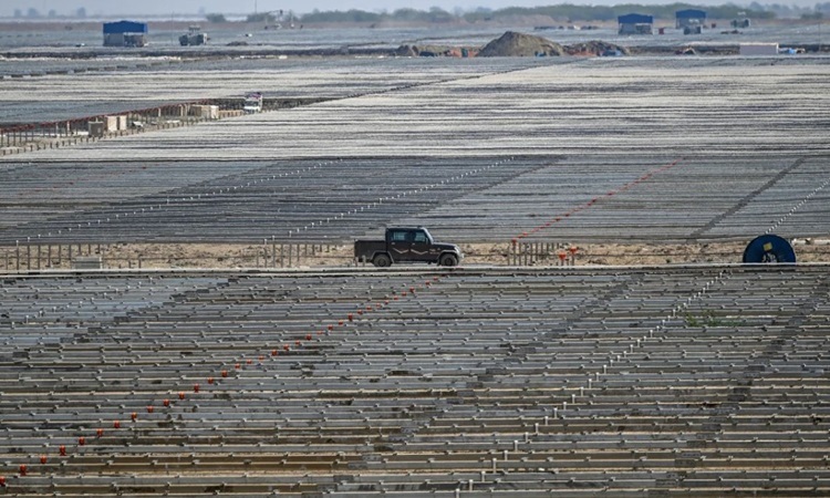 Công viên năng lượng tái tạo Khavda đang được xây dựng ở bang Gujarat. Ảnh: Punit Paranjpe/AFP
