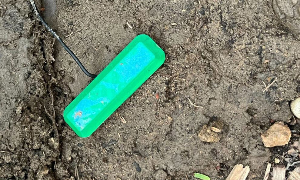 Phần nắp in 3D của pin nhô lên khỏi mặt đất. Ảnh: Bill Yen/Northwestern University