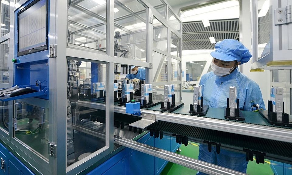Công nhân một nhà máy sản xuất pin lithium-ion tại Chiết Giang (Trung Quốc). Ảnh: Reuters