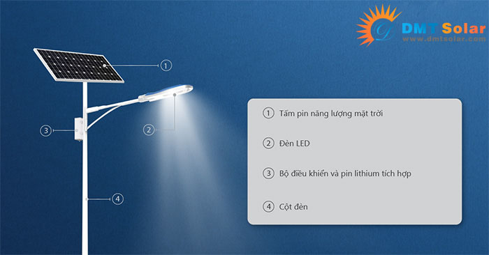 1. Cấu tạo chung của đèn năng lượng mặt trời