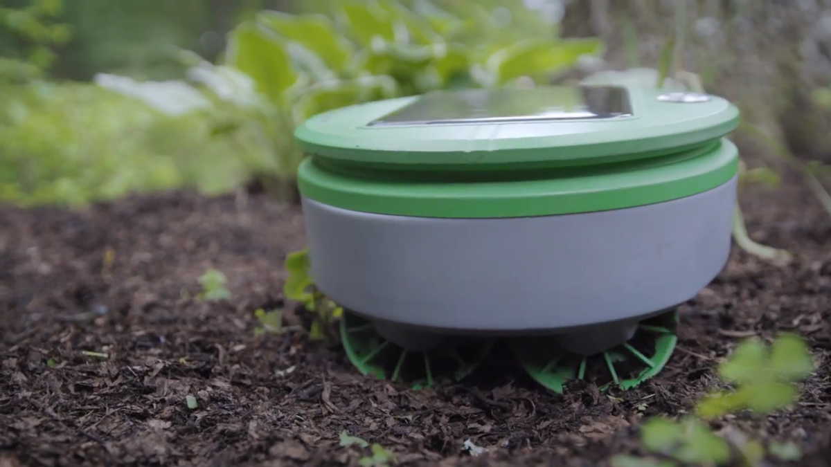 Robot cắt cỏ hoạt động bằng năng lượng mặt trời, sử dụng cảm biến để xác định chướng ngại vật. Thiết bị có giá bán 300 USD.