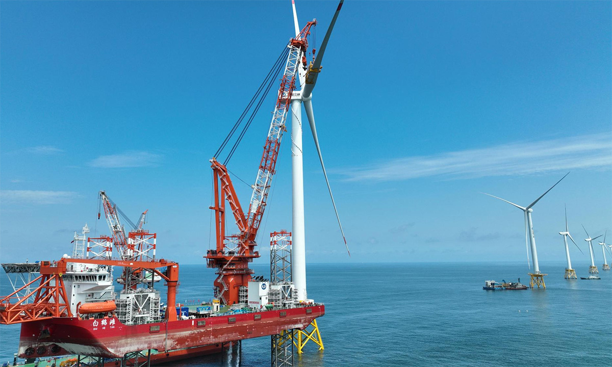 Turbine gió ngoài khơi 16 MW do Trung Quốc tự sản xuất ở ngoài khơi tỉnh Phúc Kiến, đông nam Trung Quốc. Ảnh: CMG