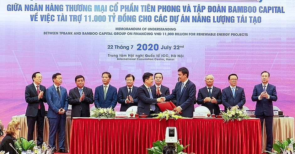 Ngân hàng TMCP Tiên Phong (TPBank) và Tập đoàn Bamboo Capital (BCG) vừa ký kết thỏa thuận hợp tác tài trợ 11.000 tỷ đồng cho các dự án năng lượng tái tạo tại Diễn đàn cấp cao về năng lượng Việt Nam diễn ra sáng nay.