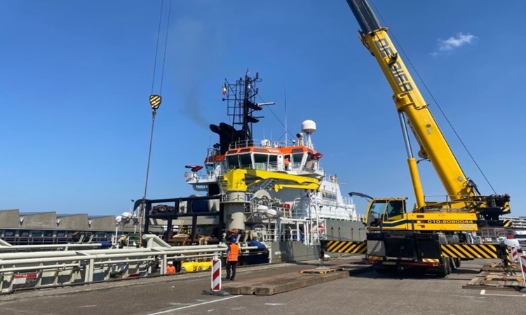 Hệ thống neo được đưa lên tàu lắp đặt để triển khai ở trang trại Hollandse Kust Noord. Ảnh: Oceans of Energy Hệ thống neo cho dự án năng lượng