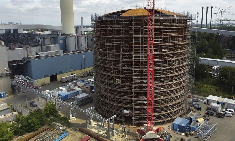 Tòa tháp màu sắt gỉ mọc lên từ khu công nghiệp gần bờ sông Spree sẽ cung cấp nhiệt sưởi ấm trong ngày cho các hộ gia đình. Bể chứa