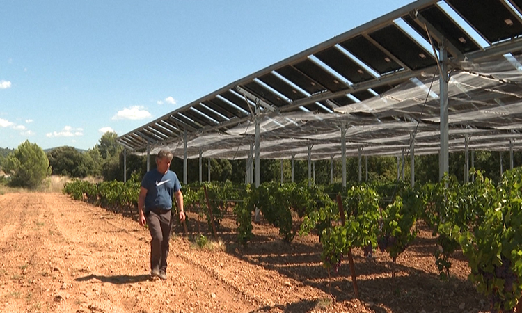 Pháp đang sử dụng pin mặt trời đi động để sản xuất điện và tạo bóng râm cho vườn cây ăn quả, giúp cây trồng đối phó với nắng nóng.