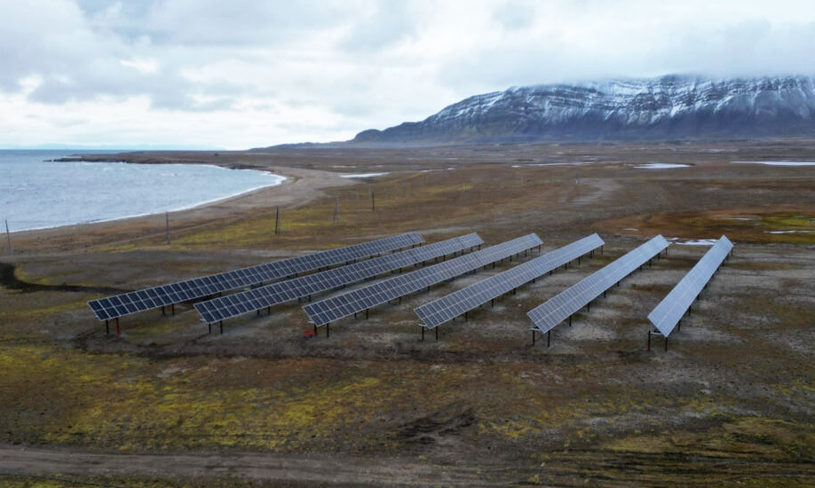 Na Uy lắp đặt 360 tấm pin mặt trời, xếp thành 6 hàng, trên đồng cỏ ở quần đảo Svalbard thuộc vùng Bắc Cực cho một dự án thí điểm.
